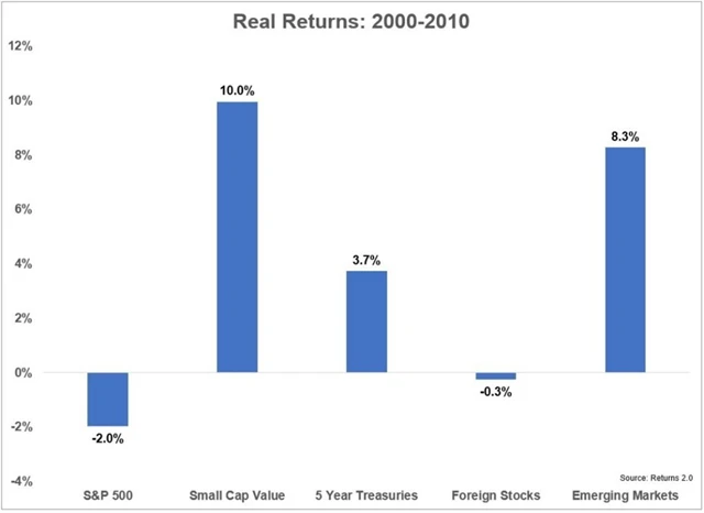 Naopak mezi roky 2000 a 2010 byl index S&P 500 na straně poražených, zatímco zářily akcie na rozvíjejících se trzích či hodnotové akcie firem s malou tržní kapitalizací. Podobně třeba mezi roky 1970 a 1987 byly akcie na Wall Street poraženy cennými papíry z rozvíjejících se trhů.