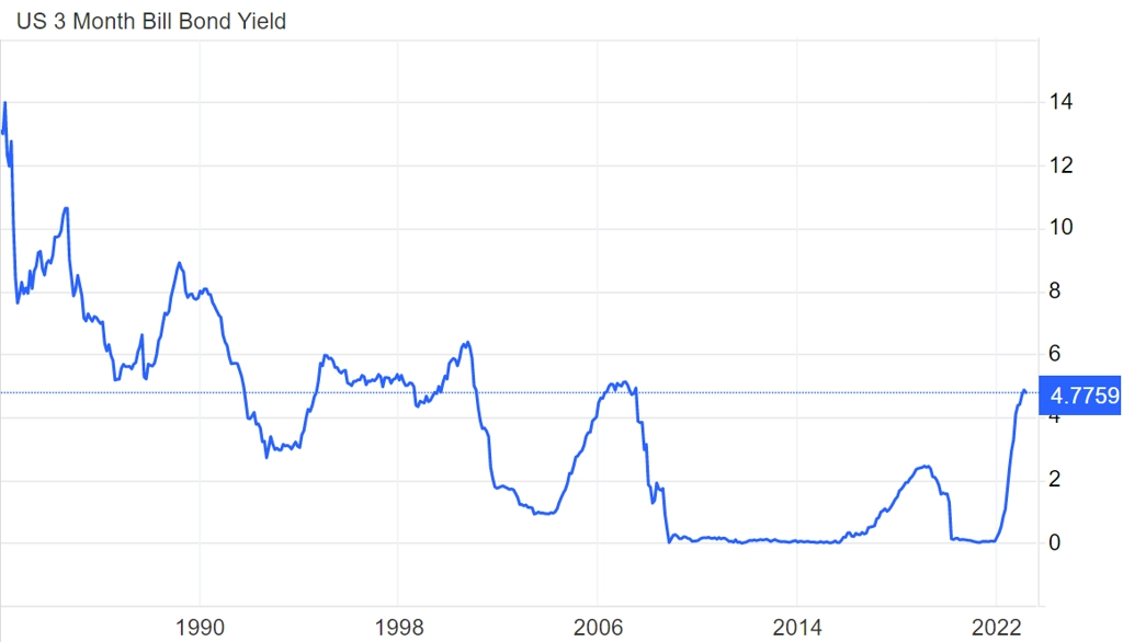 Výnosy amerických vládních dluhopisů s krátkou dobou splatnosti se pohybují (po propadu z posledních dnů) lehce pod 4 %, pokladniční poukázky vynášejí nadále téměř 5 % za rok. Americké akcie naproti tomu již odevzdaly letošní zisky a vrátily se na úrovně z konce loňského roku. I proto řada investorů uvažuje o přesunu (části) prostředků z akciového trhu na dluhopisový.