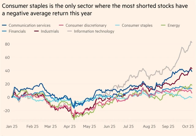 Doslova pohřebiště krátkých pozic je v technologickém sektoru. Technologické firmy tradičně táhnou býčí trendy a platí to i o tom současném. Ztrácejí naopak defenzivní odvětví, třeba sektor běžné spotřeby (pouze v něm shortované akcie letos ztrácejí). "To je typické pro zdravé tržní růsty," podotýká Parets. "Riziková aktiva, růstové sektory a inovace táhnou trh nahoru a každé nové maximum jen posiluje trend."
