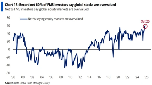 Podle říjnového kola průzkumu Bank of America celých 60 % správců fondů věří, že jsou akcie nadhodnocené. To je rekordní podíl. A podle Paretse pro býčí trend vlastně ideální situace. "Kdyby si všichni mysleli, že jsou akcie levné, bylo by to varování. Ale když převažuje nedůvěra, býčí trh má kam pokračovat," podotýká obchodník, který stojí za projektem TrendLabs a dříve působil ve společnosti All Star Charts.