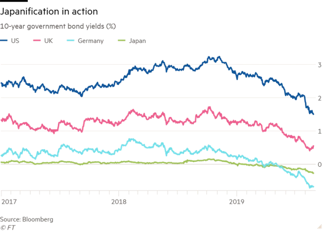 Ruchir Sharma, hlavní globální stratég Morgan Stanley, varuje, že se v další Japonsko mohou rychle proměnit i Spojené státy. Rizikem je podle něj hlavně (opětovně) uvolněná měnová politika Fedu. "Snižování úrokových sazeb v současné situaci může rychle vyústit v to, proti čemu se Fed snaží bojovat. Postrkování cen akcií, dluhopisů a nemovitostí výše a posilování dojmu nulového rizika na trzích ve spojení s podporováním růstu dluhů může skončit kolapsem finančních trhů, který následně přejde v recesi a pokles cen, podobně jako v 90. letech v Japonsku," říká.