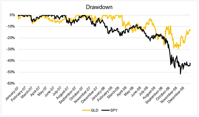 Po finanční krizi bylo zlato několik let jedním z nejvýnosnějších aktiv. Ale když se podíváme na jeho výkonnost bezprostředně po krizi, i žlutý kov ztrácel na konci října 30 %, takže to také nebyla žádná sláva, byť na tom zlato většinou bylo lépe než americké akcie (index S&P 500).