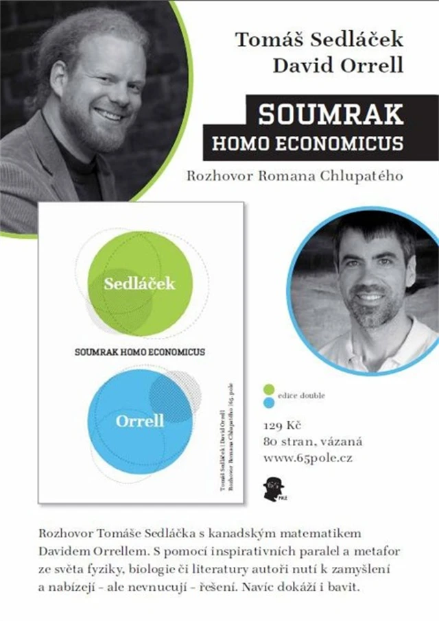 Do druhé skupiny patří Tomáš Sedláček i David Orrell. Ten se coby matematik se zálibou v modelování vyžívá v analýze toho, o čem většina laiků ani profesionálů nepochybuje. Tyto dva rebely vyzpovídal novinář Roman Chlupatý. Výsledkem je kniha Soumrak homo economicus, která se v knihkupectvích objeví právě dnes. Investiční web nabízí malou ochutnávku.