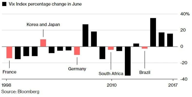 Historická data naznačují, že roli může hrát i fotbalový šampionát, který ve čtvrtek odstartoval v Rusku. Během čtyř z posledních pěti šampionátů volatilita na trzích klesla, výjimkou bylo jen mistrovství světa v roce 2002 pořádané Japonskem a Jižní Koreou.