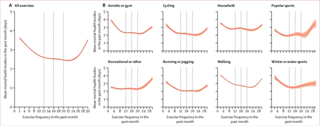 Vědci z Oxfordské a Yaleovy univerzity přišli na to, že lidé, kteří pravidelně cvičí, se v průběhu roku cítí špatně dvakrát méně než ti, kteří nežijí aktivně. Ve studii, v níž shromáždili data týkající se fyzické aktivity více než 1,2 milionu Američanů, se lidí ptali, kolikrát za posledních 30 dnů se cítili špatně (kvůli stresu, depresi a podobně). Vedle toho ale dotazovaní odpovídali i na otázky ohledně příjmů a fyzické aktivity. Na výběr měli 75 typů fyzických aktivit, od sečení trávníku přes péči o děti a domácí práce až po vzpírání, jízdu na kole nebo běh.