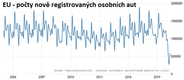 Opatření proti koronaviru navíc dramaticky srazila prodeje nových vozů, což znamená pro automobilky významný výpadek tržeb a cash flow. Pro ilustraci, od ledna do dubna se v EU prodalo o téměř 40 % méně osobních vozů než loni ve stejném období. Automobilky na tyto události reagovaly redukcí nákladů a odkladem dividend. Proto bych byl v případě akcií těchto firem velice opatrný.