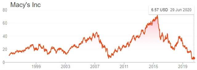 Maloobchodní prodejce se topil v problémech již dlouho před koronavirovou krizí. Klesající srovnatelné tržby, tenčící se marže a chronicky vysoké zadlužení postupně stáhly cenu akcií ze 70 USD v roce 2015 na 15 USD před vypuknutím letošní krize. Akcie sice zaznamenaly od březnového dna nárůst, ztráty ale nenapravily. To napovídá, že si trh stále není jistý, zda krize není posledním hřebíčkem do rakve Macy's, a zda tato tedy neskončí v bankrotu. S podobnými problémy se ostatně v nedávné době potýkaly také konkurenční Sears nebo J.C. Penney.