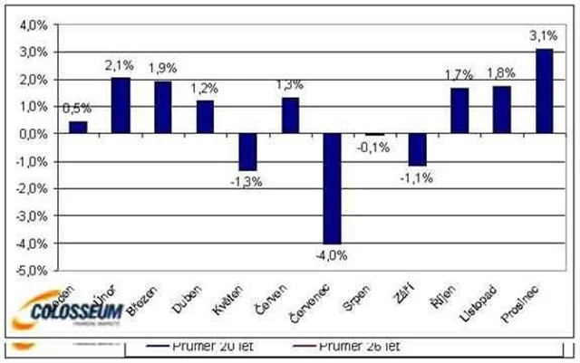 Obrázek 2: Průměrná výnosnost v jednotlivých měsících za 26 let (Zdroj: CSI, Colosseum)
