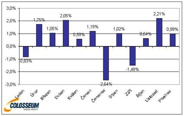 Obrázek 3: Průměrná výnosnost v jednotlivých měsících za 26 let (Zdroj: CSI, Colosseum)