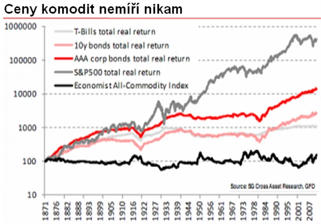 Podle aktuální studie Société Générale výnosy z komoditních investic historicky propastně zaostávají za státními dluhopisy, firemními dluhopisy i akciemi.
