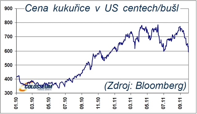 Kukuřici v posledních několika měsících podporovaly zprávy o nepříznivém počasí v USA. Sucho zde negativně ovlivnilo výnosnost. V posledních týdnech se situace však zlepšila, a navíc jsme se na komoditních trzích dočkali výprodejů, které zasáhly i zemědělský sektor.