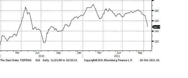 Ceny čínské železné rudy zažily nejhlubší pokles za 15 měsíců, protože začaly konečně reagovat na sníženou poptávku, a v důsledku toho, klesající ceny oceli. Čínští producenti oceli byli pod tlakem, protože zásoby dosáhly rekordních úrovní a ceny klesly na 10měsíční minimum. Za tímto vývojem stojí snížená poptávka ze železničního odvětví, protože vláda pozastavila 80 procent nových železničních projektů i dokončení mnoha dalších.
