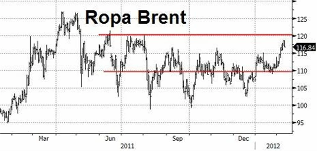 Ropa Brent se přiblížila půlročnímu maximu na 120 dolarech za barel, což je hodnota, která vede k oslabení fundamentů a může narušit poptávku tak, jak jsme viděli v polovině minulého roku. Cenu ropy Brent , která je aktuálně hlavním benchmarkem, ovlivňuje zimní evropská poptávka a íránské embargo, protože asijské rafinérie si hledají jiný zdroj ropy, a celkově silně poptávka z rozvinutých ekonomik. Toto napětí mezi poptávkou a nabídkou způsobilo růst ceny ropy Brent s okamžitým dodáním nad futures ceny, což je situace zvaná backwardation.