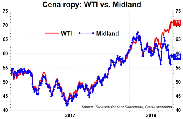 Vyšší ceny přepravy ropy se odrážejí v narůstajícím rozdílu mezi cenou standardní ropy WTI a ropy Midland, která představuje benchmark ceny, za kterou svoji produkci prodávají vnitrozemští američtí těžaři. Ačkoli cena WTI roste, kvůli přetlaku nabídky ve vnitrozemí cena ropy poklesla.