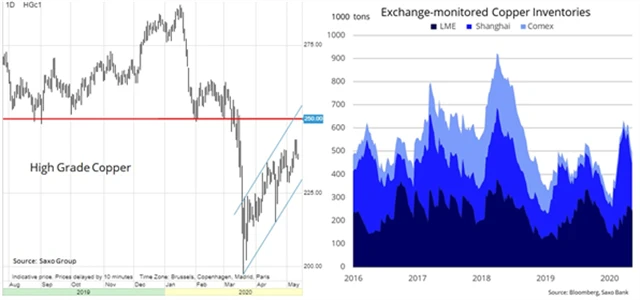 Stejně jako ceny ropy a dalších komodit závislých na hospodářském růstu je nyní cena mědi ve vzestupném trendu, protože uvolňování restriktivních opatření v ekonomice podporuje poptávku. Vedle toho se nálada na trzích s komoditami závislými na růstu zlepšuje i díky podpoře ekonomiky ze strany vlád a centrálních bank. To vše navzdory největšímu poklesu globálního růstu a vzestupu nezaměstnanosti od Velké hospodářské krize. Obchodníci s komoditami hromadí fyzický majetek, mezi jinými například právě kovy. Citelná poptávka je v Asii.