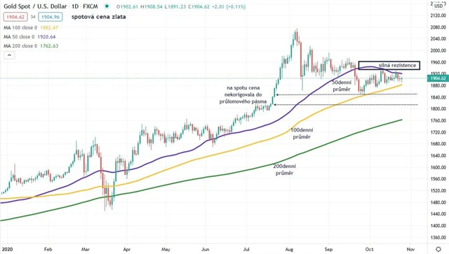 Závěrem lze z technického pohledu dodat, že dokud cena zlata neprolomí razantně a jednoznačně 50denní průměr a pásmo 1 945 až 1 950 USD za unci, bude trh nadále ohrožen zmíněným "finálním výprodejem".