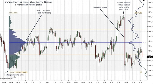 - Zadruhé se kolem hladiny 1 907 USD nachází bod kontroly (point of control) celé rotace trhu, měřeno od 24. září (počátek primárního cyklu) do současnosti. Ani zdolání této hladiny nebude jednoduché.