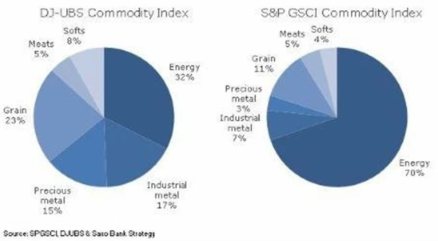 Odlišná struktura obou indexů vysvětluje jejich rozdílné výkonnosti. Například energetický sektor se na výkonnosti indexu S&P GSCI podílí největší měrou. To bylo vidět hlavně během první poloviny roku 2012, kdy geopolitické napětí spojené s íránským jaderným programem poslalo cenu ropy výše, než se její ceny propadly o 30 %.