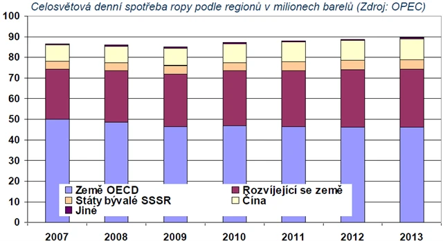 Poptávka po ropě byla loni rekordně vysoká. Tahounem zvyšování spotřeby jsou zejména rozvíjející se státy na čele s Čínou.
