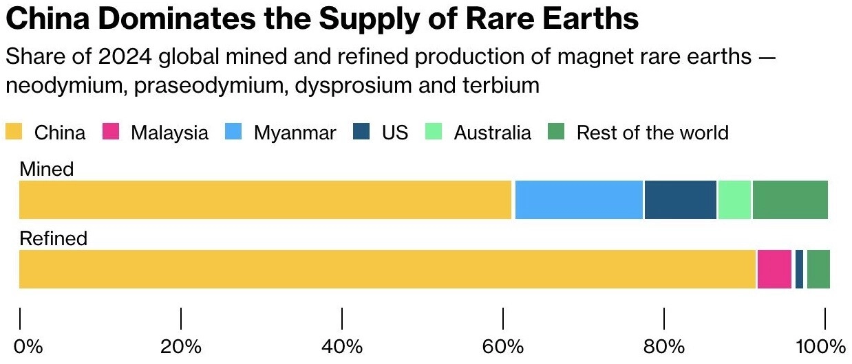Když Peking před pár dny rozhodl o zpřísnění pravidel pro vývoz některých vzácných zemin a permanentních magnetů, manažery řady průmyslových firem od automobilek přes producenty elektroniky až po zbrojaře napříč kontinenty polil ledový pot. Americký prezident Donald Trump v reakci na rozhodnutí Číny oznámil, že USA s platností od 1. listopadu uvalí dodatečné clo 100 % na dovoz z Číny, jenže to zřejmě mnoho nezmění, protože Spojené státy zkrátka tahají za kratší konec provazu.