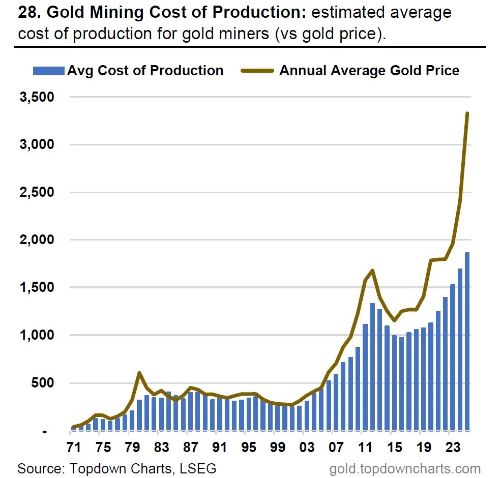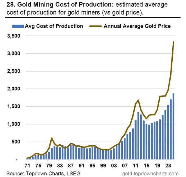 U těžařů zlata je důležité vnímat narůstající rozdíl mezi průměrnou cenou zlata a náklady na jeho těžbu. Pro producenty kovu by to mělo logicky znamenat vyšší zisky, zvýšená poptávka po kovu ale bude tlačit i na investice do nových těžebních kapacit, což by znamenalo výrazný růst nákladů. Současné marže nicméně pro firmy těžící žlutý kov zůstávají velice příznivé.