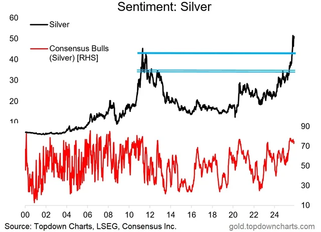 Trh se stříbrem má za sebou také impozantní růst a vykazuje poměrně výraznou volatilitu na denní bázi. Názory analytiků jsou až podezřele jednotné ve směru dalšího růstu ceny. Před dalšími růsty možná bude potřeba přece jen výraznější korekce, případně alespoň delší "oddechový čas".