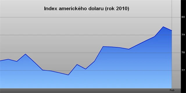 Rally na dolaru pokračuje a z posilování primárně vůči euru se stalo posilování širší, dolarový index od svých lednových minim posílil o 4%. Spekulace na další oslabení eura dosáhly podle Komise pro obchodování s komoditami ve Washingtonu nejvyšších úrovní od září 2008. Dvoutýdenní indikátor relativní síly zároveň zůstává pod hodnotou 30, což indikuje, že trhy jsou přeprodané a jsou zralé na otočku.