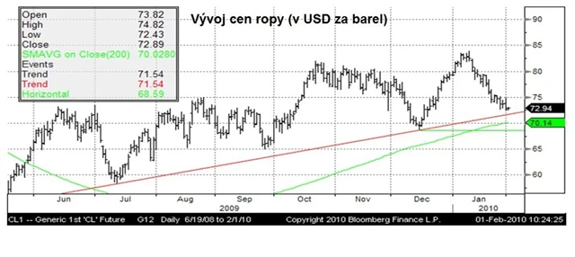 Technickou support úroveň při prolomení 71.50 USD představuje 200 denní klouzavý průměr na 70 USD a potom prosincové lokální minimum na 68,60 USD. Krátkodobá rezistence se naopak nachází na ceně 75 USD.