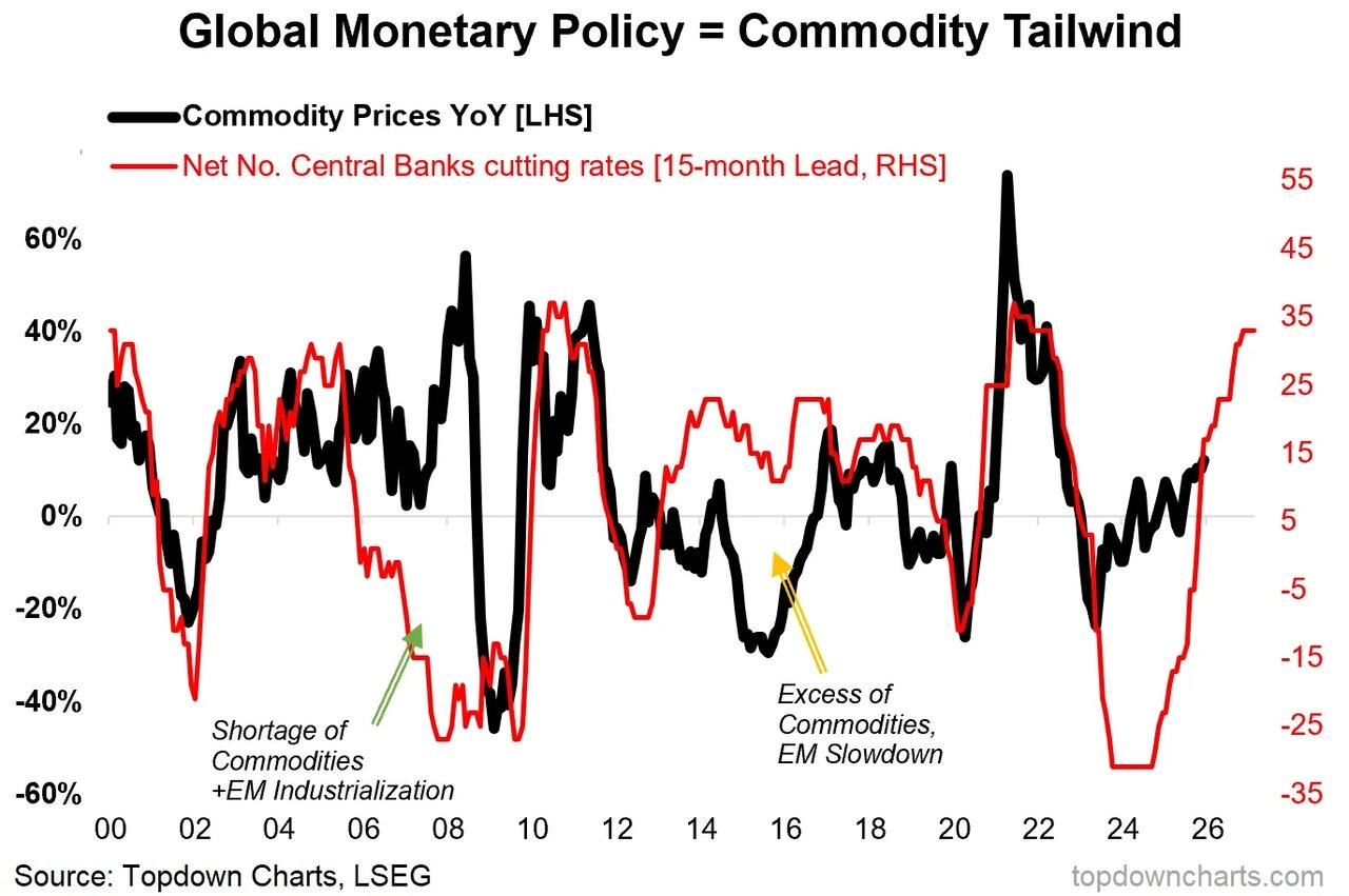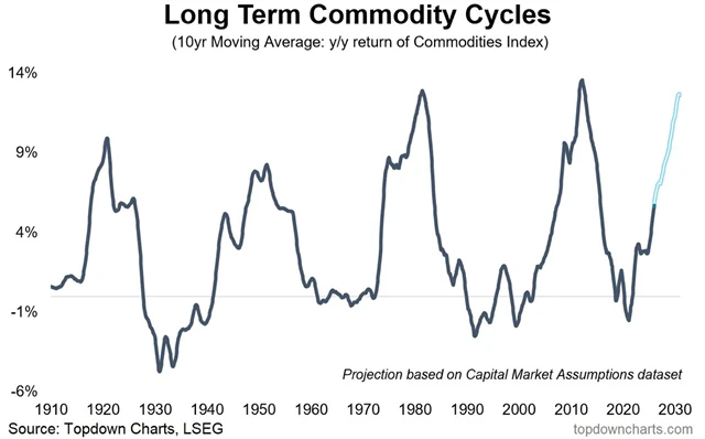 Zdá se, že je trh s komoditami už v novém supercyklu. Cyklický medvědí trh z let 2022–2024 je pravděpodobně u konce a začíná nový růst. To vše v kombinaci se strukturálními faktory, jako jsou energetická transformace, elektrifikace, geopolitické faktory, AI, nové vesmírné závody a masivní obnovování infrastruktury. Jen pozor na inflaci.