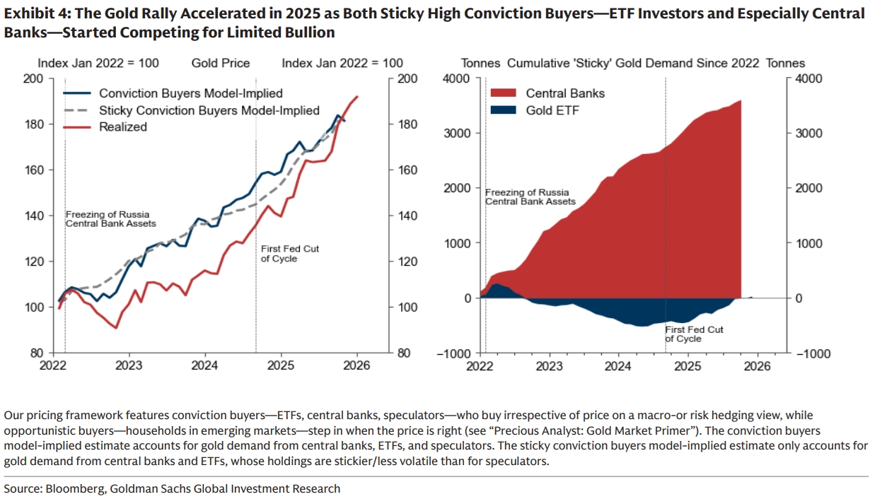 Investoři, kteří zlato dosud nakupovali jako pojistku proti makroekonomickým a politickým rizikům, si podle analytiků v současnosti budují dlouhodobější pozice. Nejde už o sázky na konkrétní události, jako byly v posledním roce třeba americké volby, ale o reakce na dlouhodobější obavy ze zadlužení států a směřování hospodářské politiky. "Právě to vede investory k stabilnějším investicím do zlata a dalších drahých kovů," napsali analytici z Goldman Sachs ve zprávě k nové cílové ceně pro zlato.