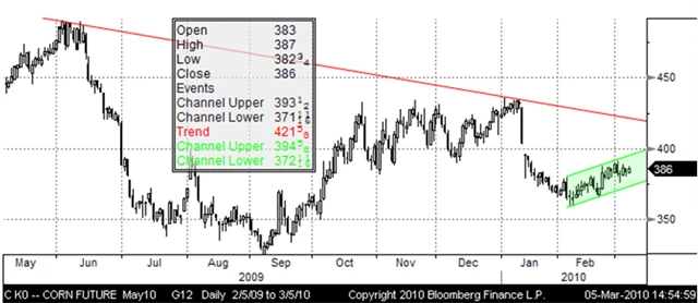 - března bude zveřejněn report o sklizni a na trhu se objevují spekulace o tom, že USA sníží produkci, aby poskytly podporu lednovým cenám. Také další faktory hovoří pro podporu ceny - jsou to poptávka po ethanolu, obavy o kvalitu produkce, problémy se setbou v důsledku chladné zimy a také historicky dané schéma, kdy cena kukuřice obvykle na jaře roste.