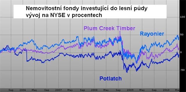 Některým investorům se přestala líbit situace na akciových trzích. Začali proto investovat do třídy aktiv, která od roku 1987 snadno překonává akciový trh – do lesní půdy. Dolar investovaný v roce 1987 do indexu National Council of Real Estate Investment Fiduciaries' Timberland měl na konci roku 2009 hodnotu téměř 21 dolarů, což znamená více než 14% roční výnos.