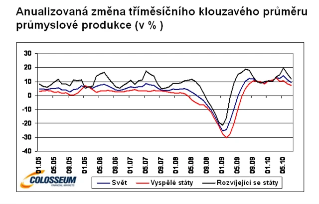 Globální průmyslová produkce dosáhla předkrizové úrovně – celosvětová průmyslová výroba v posledním roce roste a už byla pokořena produkční úroveň z před krize v letech 2008 a 2009. Zásluhu na tomto vývoji mají zejména rozvíjející se země. Jejich ekonomiky se za pomoci růstu domácí poptávky a rozsáhlé vládní pomoci velmi rychle zotavily z náhlého poklesu exportu a investic. Vůči krizi se ukázaly být odolné především asijské země. Čína a další státy jihovýchodní Asie v současnosti dosahují rekordní úrovně výroby a exportu.
