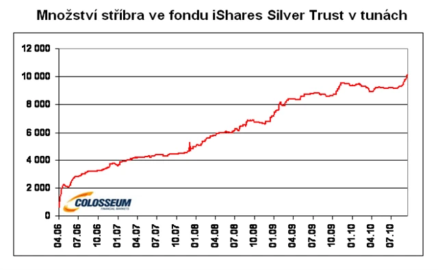 Největší stříbrný ETF na světě iShares Silver Trust už zvýšil objem spravovaného stříbra na 10 086 tun. Nominální hodnota této pozice je téměř 7,5 miliardy USD. Za poslední rok bylo do fondu nakoupeno 1 500 tun kovu.