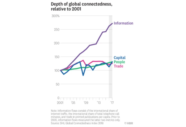Globální výrobní řetězce a obecněji mnohé fyzické přeshraniční obchodní vazby se rozvazují, nebo jsou přinejmenším pod tlakem. Příčinou jsou přetrvávající geopolitické třenice, nové technologie umožňující levnou repatriaci výroby a další faktory, mezi něž se aktuálně řadí i hysterií dopovaná obava z koronaviru.