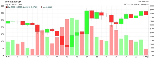 Vývoj kurzu bitcoinu (1M, do 1. srpna 2017)
