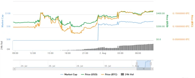 Bitcoin cash - vývoj kurzu a tržní kapitalizace, zdroj: coinmarketcap.com