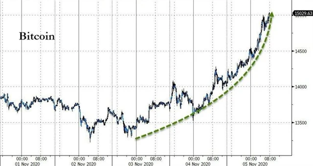 Právě na něj se upřou pohledy (nejen) investorů v době, kdy se politici nejspíše budou dále dohadovat o velikost a podobu stimulačního balíku pro hospodářství USA. A jedním z efektů pokračujícího (a možná ještě intenzivnějšího) kvantitativního uvolňování může být strmý růst ceny bitcoinu, který po dlouhé době prolomil hladinu 15 000 USD.