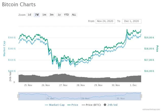 Kurz bitcoinu se v úterý dopoledne podle dat serveru coinmarketcap.com pohyboval kolem 19 700 USD poté, co se v pondělí odpoledne dostal až na 19 749 USD. Jeho historické maximum je podle coinmarketcap.com 19 783 USD. Bitcoin testoval historické maximum už minulý týden, ve čtvrtek ale prošel korekcí, když se z 19 300 USD vrátil pod 16 500 USD.