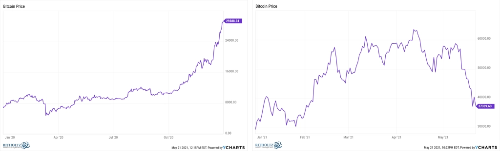 Bitcoin a další velké kryptoměny v loňském roce patřily mezi aktiva s nejlepší výkonností. Kurz bitcoinu zpevnil ze zhruba 8 000 USD až k 30 000 USD. Letos rally bitcoinu pokračovala, jeho kurz se dostal až nad 60 000 USD, na konci jara ovšem přišel prudký obrat a kryptoměny po názorovém veletoči Elona Muska stran bitcoinu a zpřísňování regulace digitálních měn v Indii, Číně nebo Turecku zaznamenaly volný pád.