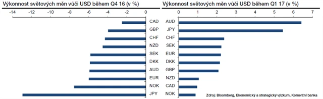 Dolar se v posledních dvou čtvrtletích více než fundamenty řídil tržním sentimentem vyplývajícím z takzvaného Trump efektu. Přehnaný optimismus po nečekaném zvolení Donalda Trumpa americkým prezidentem vystřídal zejména v průběhu března nárůst obav, zda bude nový šéf Bílého domu schopen naplnit své sliby, kterými hned po svém zvolení nadchl finanční trhy. Aktuálně se dolar pohybuje poblíž hodnot z období před zvolením nového prezidenta.