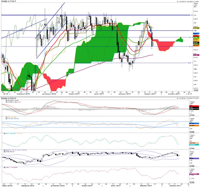 Technická analýza měnového páru EUR/USD a cen ropy Brent a zlata. (21. 4. 2017)