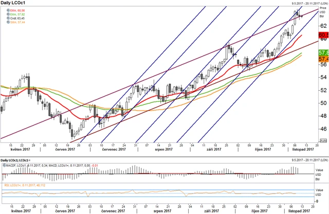 EUR/USD, ropa, zlato a EUR/CZK: Co naznačuje technická analýza (13. 11. 2017)