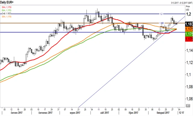EUR/USD, ropa, zlato a EUR/CZK: Co naznačuje technická analýza (4. 12. 2017)