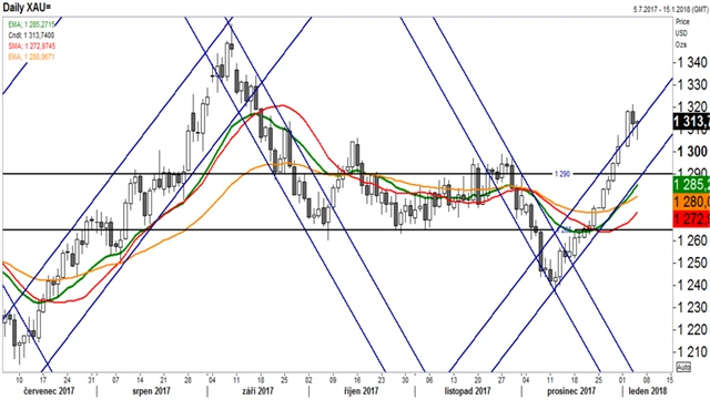 EUR/USD, ropa, zlato a EUR/CZK: Co naznačuje technická analýza (6. 1. 2018)