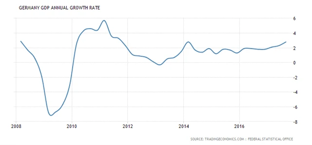 Tvrdá data i předstihové indikátory potvrzují, že je evropská ekonomika v nejlepší kondici za uplynulou dekádu. Tahounem zůstává Německo. Podle předběžných dat vzrostla německá ekonomika v roce 2017 o 2,2 %.