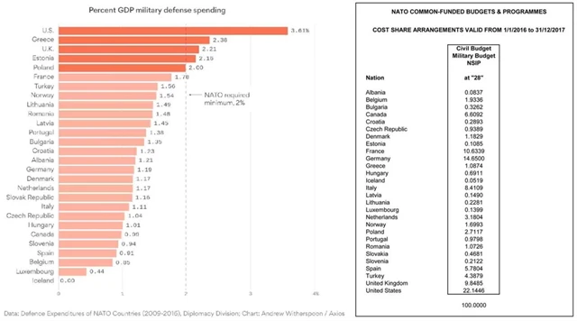 "Německo na obranu určuje jen ekvivalent 1,2 % HDP, což dokazuje, že nemá problém s tím, aby bezpečnost Evropy ležela z velké části na bedrech Spojených států, které jsou hlavním 'sponzorem' NATO (na obranu vynakládá Washington ekvivalent 3,6 % HDP)," píše nezávislý analytik Michael Ivanovitch.