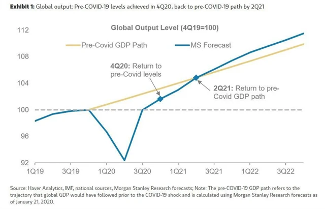 Morgan Stanley předpokládá pro rok 2021 růst světového HDP o 6,4 %, konsenzus ekonomů se pohybuje jen lehce nad 5 %. Alfou a omegou bude účinné řešení pandemie covidu-19 v podobě vakcín. Banka věří, že se soukromý sektor jako celek vzchopí poměrně rychle. Růst potáhnou zejména rozvíjející se ekonomiky, které se s koronavirovou hrozbou vyrovnávají lépe již letos. K již nyní překvapivě odolné spotřebitelské poptávce se podle Morgan Stanley v prvním pololetí příštího roku přidají také kapitálové výdaje firem.
