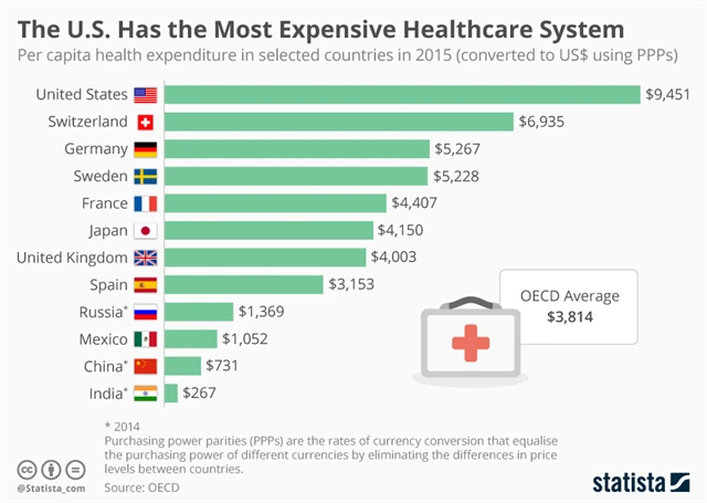 Pokud se zaměříme na systémy zdravotnictví, zdá se, že důležitější je to, za co se peníze utrácejí, nikoli kolik se do systému vloží. V posledním desetiletí Španělsko vyniká podstatným snížením výskytu kardiovaskulárních chorob a úmrtí na rakovinu. Za tímto úspěchem stojí důraz na prevenci a včasnou diagnostiku. Tamní zdravotnictví je převážně financováno z daní a funguje na principu volného a univerzálního přístupu ke zdravotní péči. V podstatě každý má nárok na stejnou úroveň zdravotní péče bez ohledu na to, kolik peněz má k dispozici. Výdaje na zdravotní péči na osobu jsou ale ve Španělsku i tak pod průměrem OECD a dosahují pouze jedné třetiny výdajů v USA.
