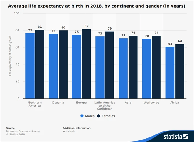 Očekává se, že do roku 2040 Španělsko přeskočí Japonsko a bude mít nejvyšší očekávanou délku dožití (86 let). Zbytek světa bude tento trend prodlužování délky lidského života následovat, Čína v něm pravděpodobně předčí USA.